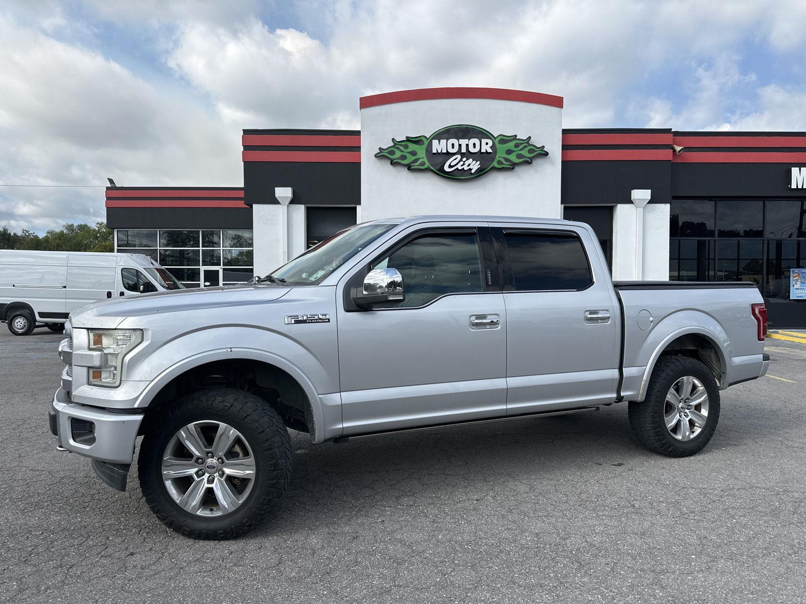 This 2016 Ford F-150 Platinum, has a Ingot Silver Metallic exterior and an Black interior color. 120,522 miles. Stock Number 12847B. You can connect with us by calling 337-232-6969. ***TWIN PANEL SUNROOF ($1295)*** ***TRAILER TOW PACKAGE ($895)*** ***FX4 PACKAGE ($770)*** ***EXTENDED RANGE FUEL TANK ($395)*** ENGINE: 5.0L V8 FFV