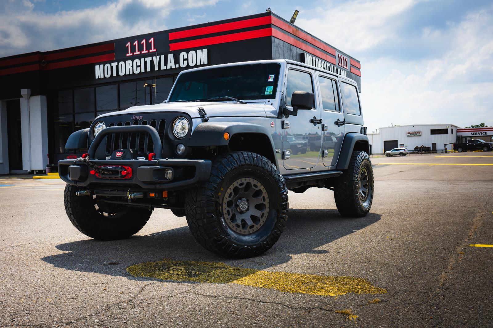 This 2017 Jeep Wrangler Unlimited Rubicon Recon, has a Billet Silver Metallic Clearcoat exterior and an Black interior color. 33,948 miles. Stock Number 12832. You can connect with us by calling 337-232-6969. No Accidents! DUAL TOP GROUP, MAX TOW PACKAGE, OVERSIZE SPARE TIRE CARRIER, SWING GATE REINFORCEMENT, RADIO: 430 NAV, ALPINE 9-SPEAKER W/ALL WEATHER SUBWOOFER